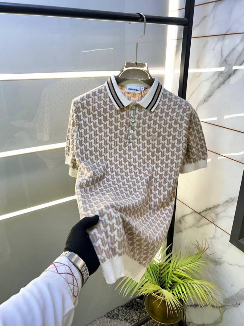 Lacost e Imported Brown Monogram Premium Collar Neck Polo T-shirt F3527-BR